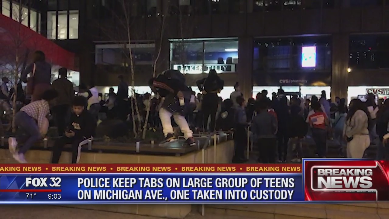 A huge group of teenagers triggered a massive police response in downtown Chicago.