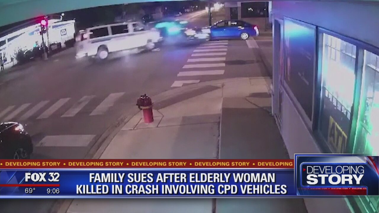 An 84-year-old woman's death in a traffic collision involving two Chicago police vehicles last month was a direct result of both a lack of officer training and "recklessly" speeding along city streets, relatives of the woman said Tuesday.