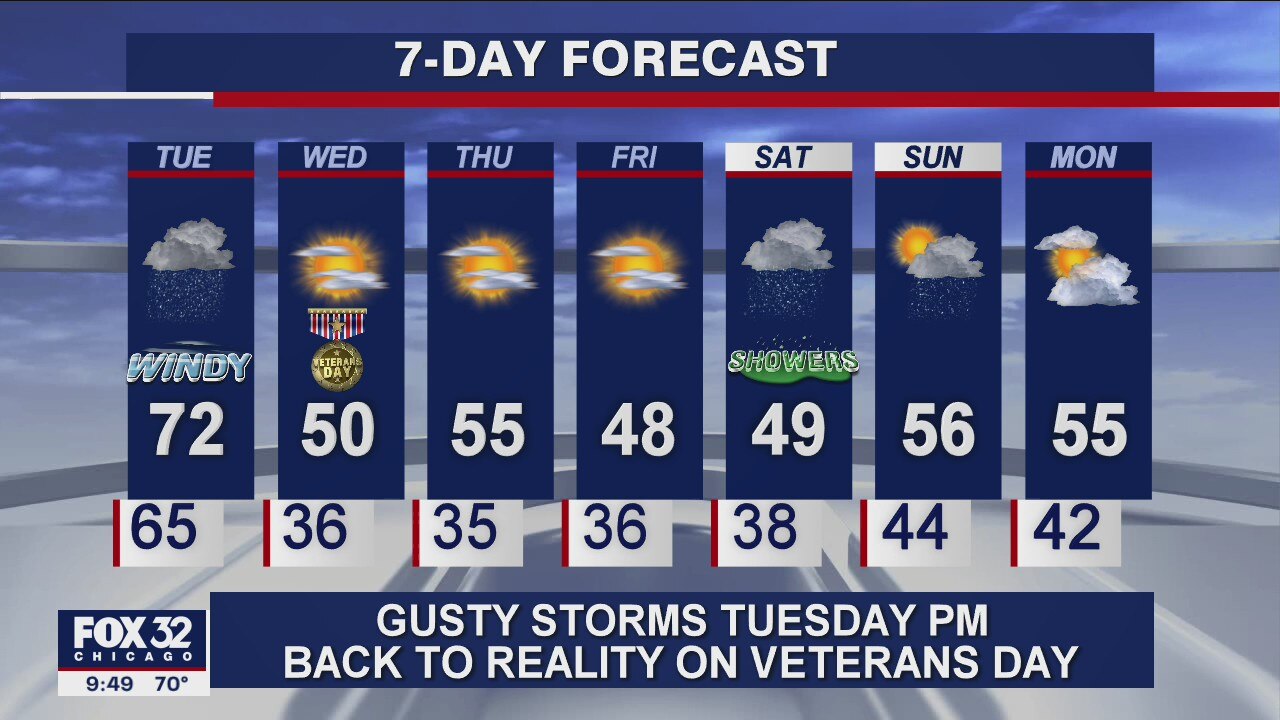 10 p.m. forecast for Chicagoland on Nov. 9