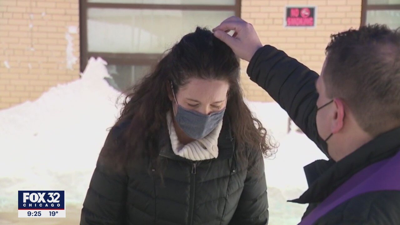 Instead of receiving ashes on the forehead, this year because of the pandemic, ashes were sprinkled on top of a person's head.