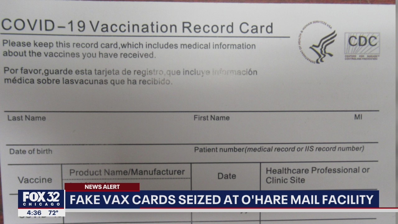 U.S. Customs and Border Protection officers in Chicago said they seized 19 counterfeit COVID-19 vaccination cards arriving from China.