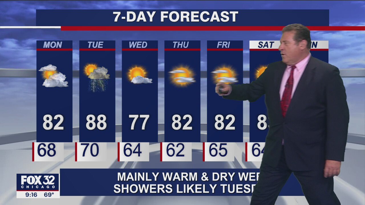 Mark Strehl says it'll be warm and mostly dry this week, though showers are likely on Tuesday.