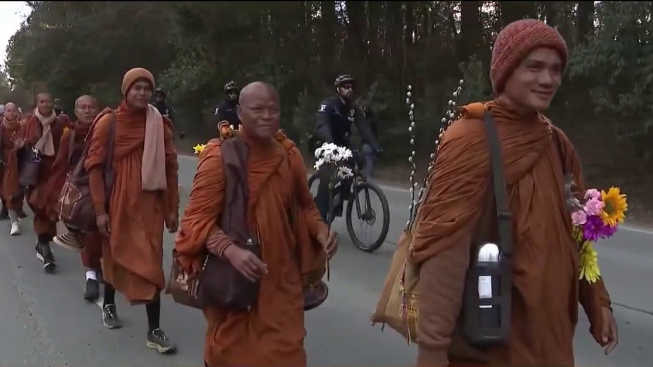 After 15 weeks and more than 2,300 miles on foot, 19 Buddhist monks finished their journey from Texas to Washington, D.C. The walk was meant to raise awareness about peace, drawing crowds along the way.