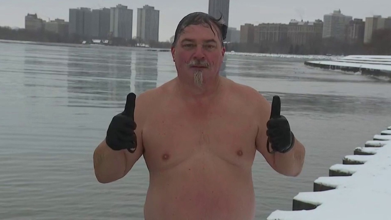 Chicago man continues tradition of jumping into Lake Michigan, even in the cold