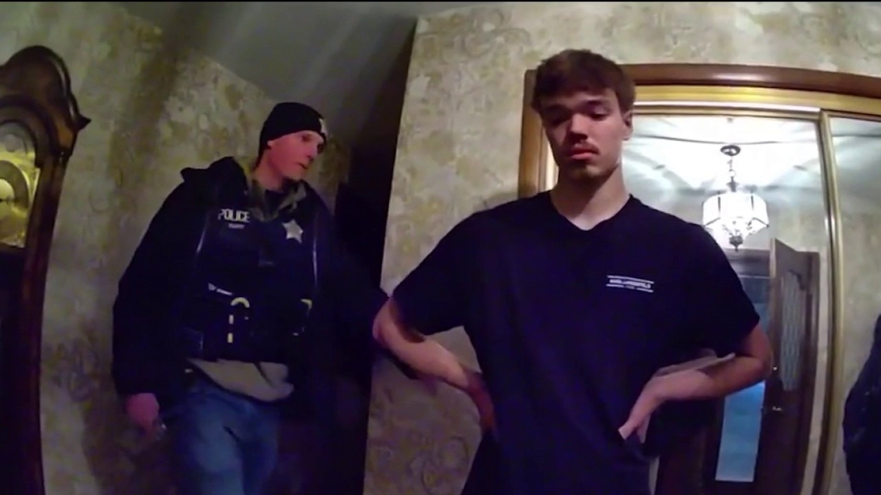 Newly released body camera video shows Downers Grove police questioning the 19-year-old accused of stabbing a pregnant woman more than 70 times and setting her on fire.