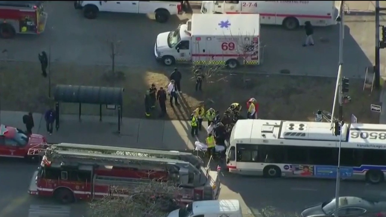 Several people are hurt in a crash involving a CTA bus. Sky Fox was over the scene off King Drive. CFD tells us 15 people were taken to the hospital, including three children who were not seriously hurt.