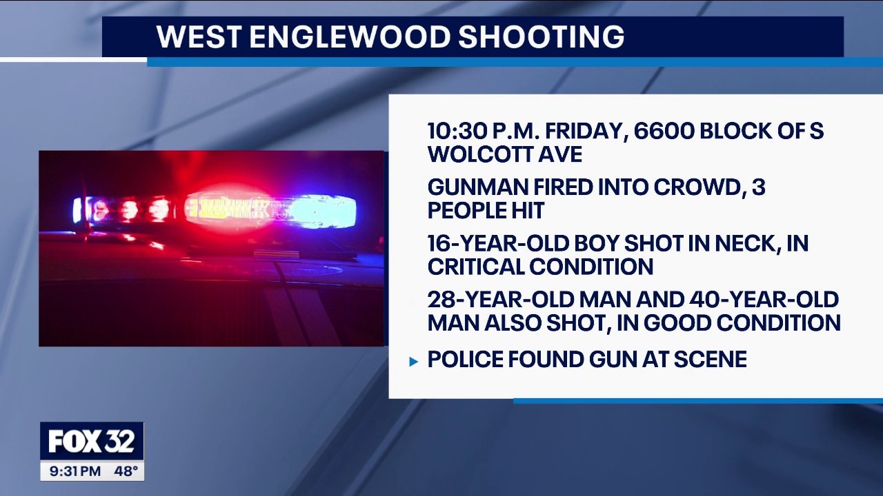Chicago police are looking for the gunman who opened fire on three people overnight critically injuring a teenage boy.