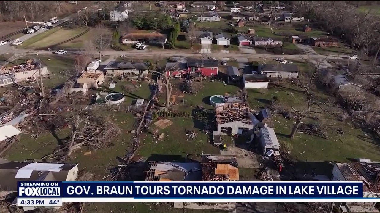 Gov. Braun toured Lake Village on Thursday after the area was struck by a tornado earlier in the week, leaving behind widespread damage.
