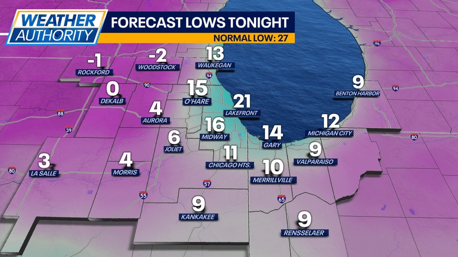 Attention is now turning to a quick blast of cold coming our way tonight. Outlying areas will drop into the single digits, with the Chicago metro and lakefront communities likely seeing overnight lows in the 10-15 degree range.
