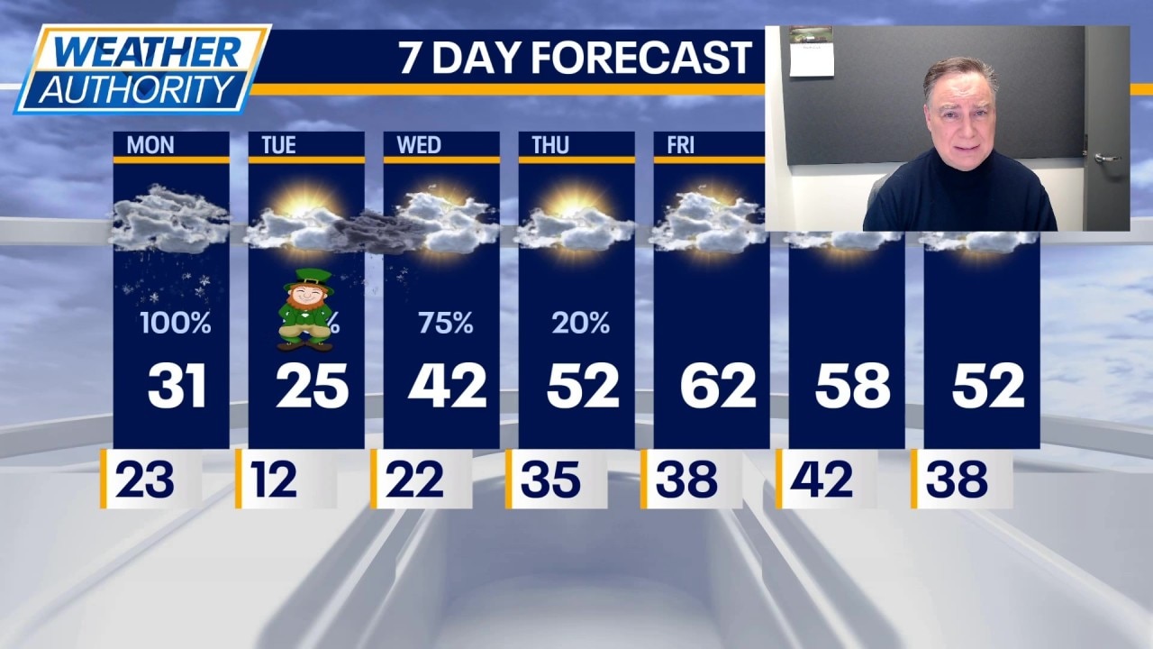Then we begin a warmup. Wednesday we make it into the lower 40s with a chance for rain late at night. Thursday into the weekend look dry with highs in the 50s and 60s.