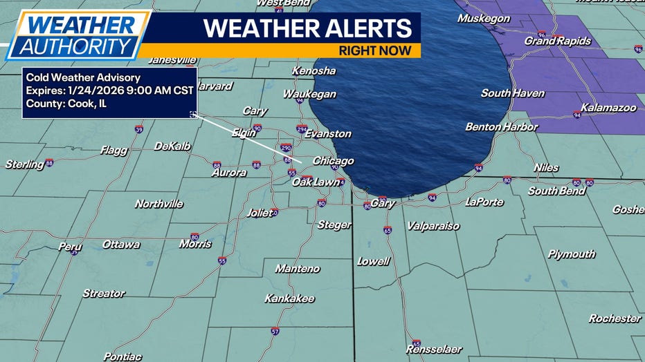 There is a Cold Weather Advisory for the whole area until 9 a.m. Saturday.
