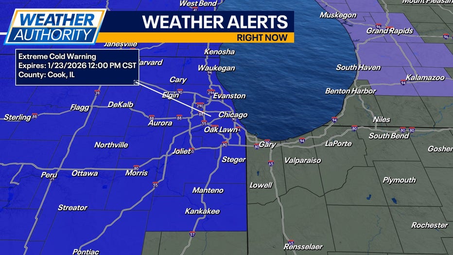 We have a Cold Weather Warning in place for most of Chicagoland from 3 a.m. - 12 p.m. on Friday. Wind chills will be bottoming out at 30-40 degrees below zero tonight and early tomorrow.