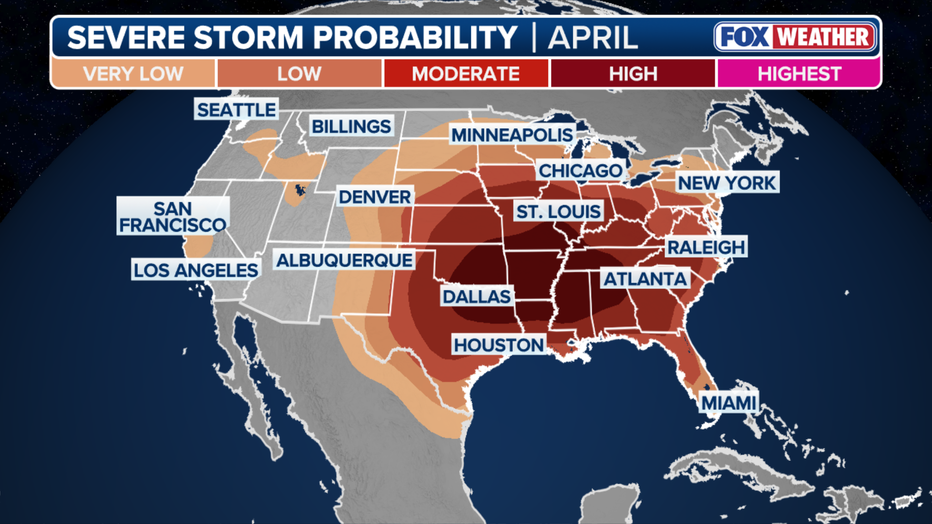 April severe storm threat outlook. (FOX Weather)