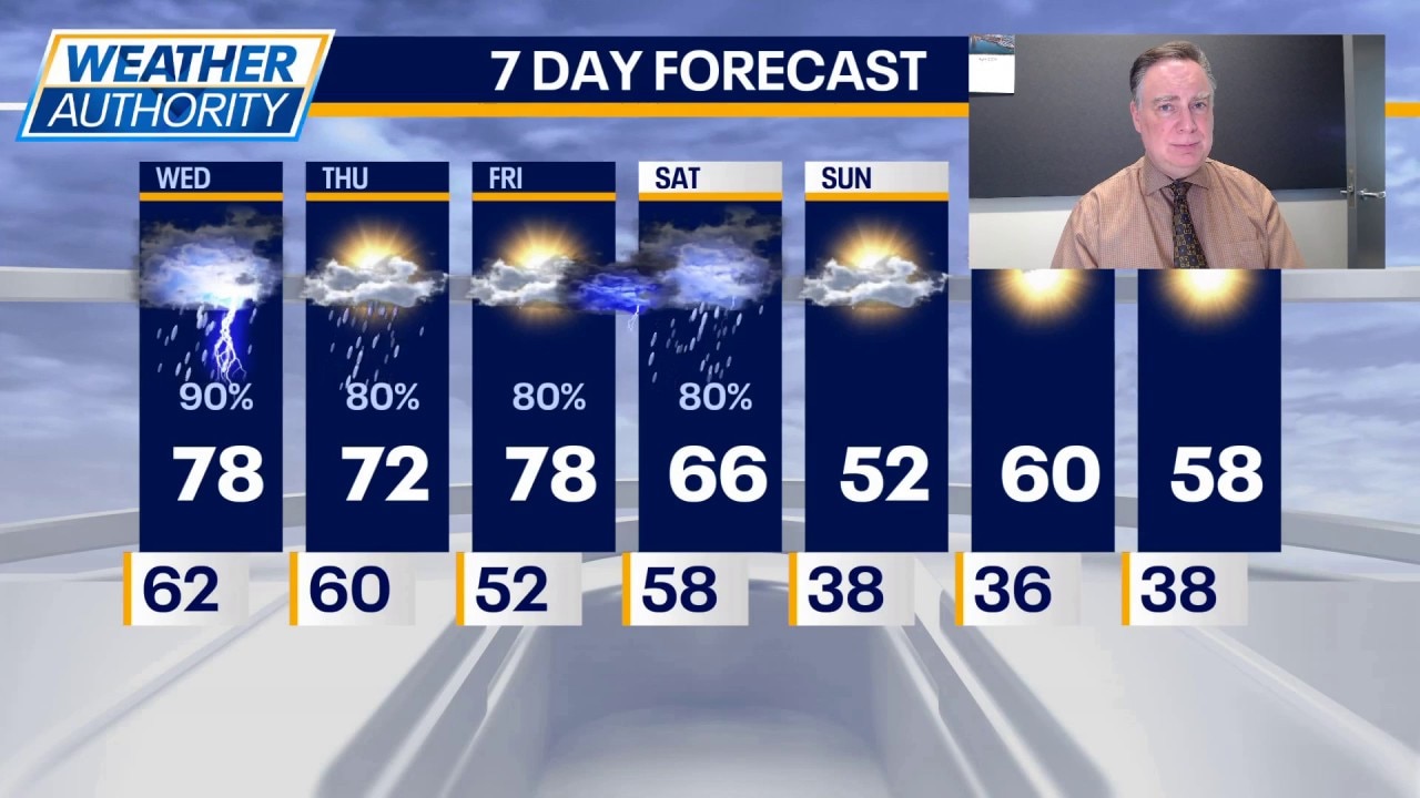 Friday should start dry, but the next storm system arrives late in the day and at night. It’s still several days away, but some of those storms could be severe once again, followed by a distinct cooldown over the weekend.