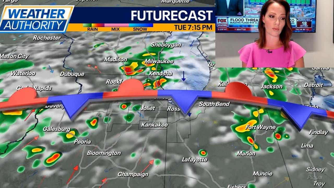 A line of scattered showers and storms will approach the area tonight, possibly bringing gusty winds with any storms that are on the stronger side. The Storm Prediction Center has the northwestern sections of Chicagoland in a Marginal Risk, which is a level 1 of 5.