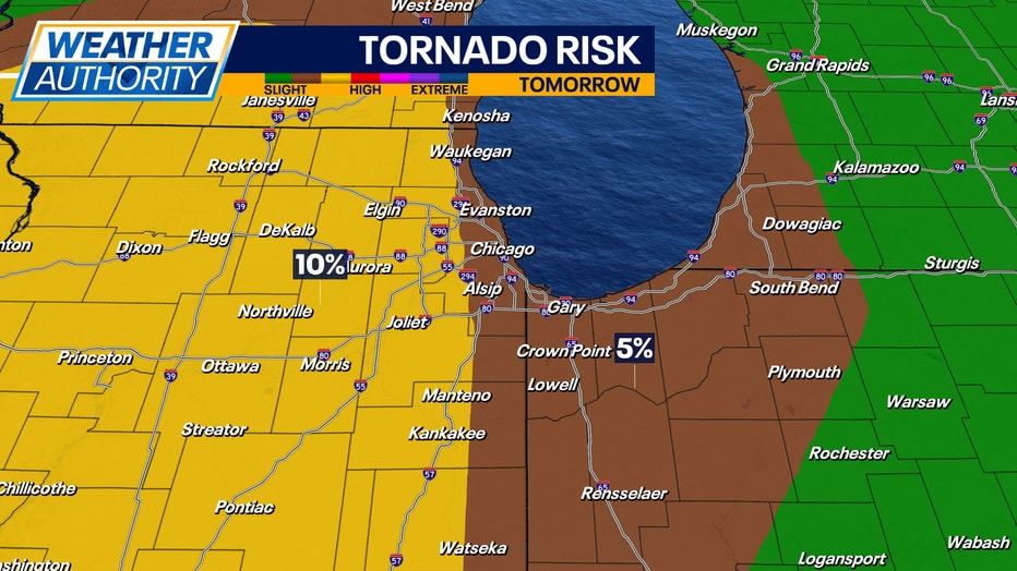 The primary threat with any storms that become severe will be damaging wind gusts, but the tornado threat is also concerning. The highest threat of tornadoes is in NE Illinois, where we could potentially see large or long-track tornadoes Thursday afternoon and evening.