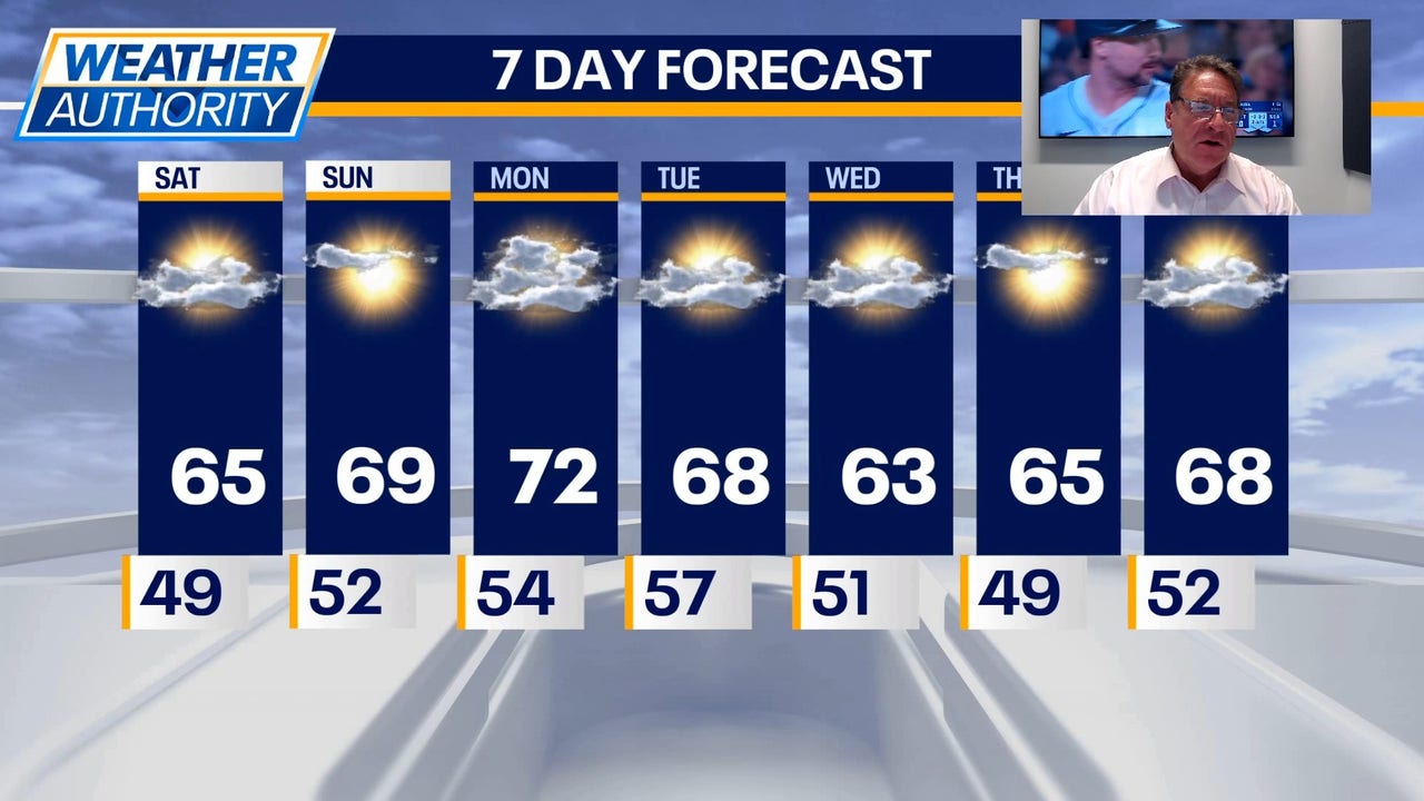 Saturday will bring abundant sunshine with highs near 65 degrees. Sunday is forecast to be slightly warmer, with highs around 69 degrees and no rain in sight.