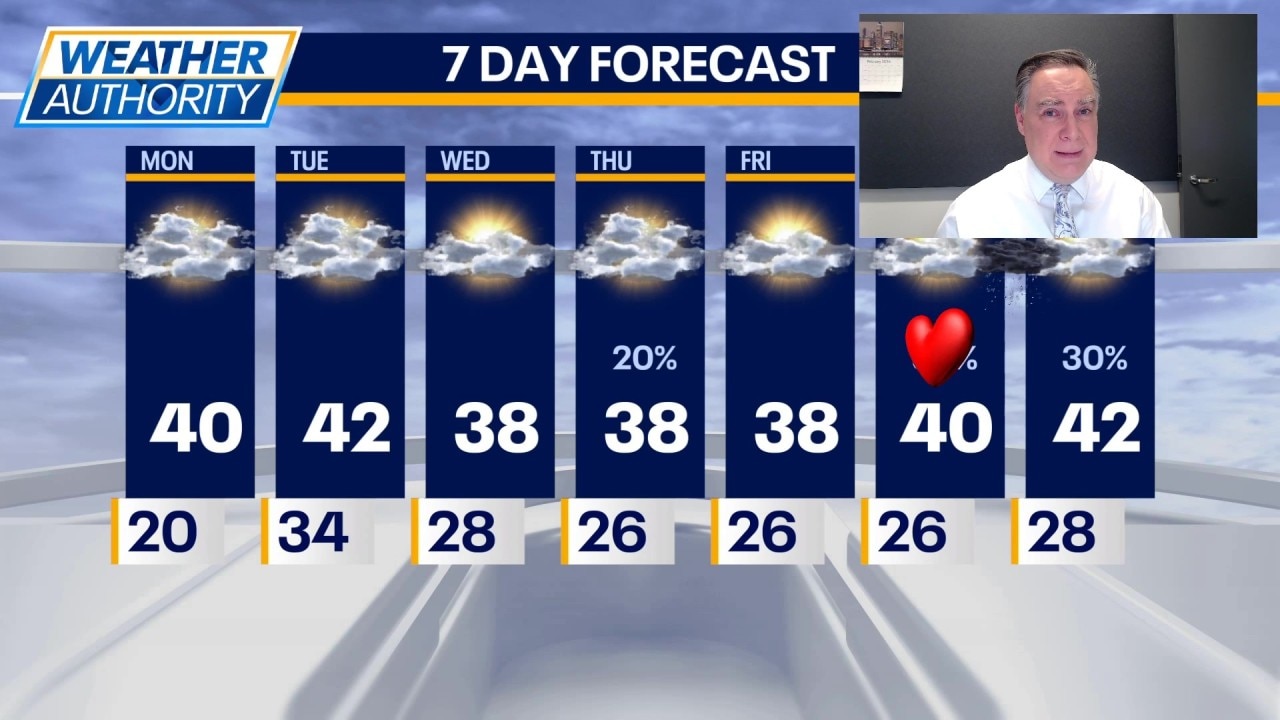 Over the weekend, temperatures will begin to edge up slightly — likely reaching the 40s by Sunday. There is a chance for some rain or wet snow Saturday night into Sunday morning, but at this juncture a significant storm is not likely in Chicagoland.