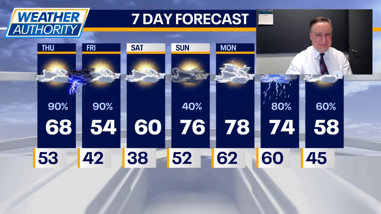 We keep the unseasonable warmth going Monday and Tuesday with highs in the 70s, but there will be scattered showers and thunderstorms, and we will need to keep an eye on the possibility of severe weather during that timeframe.