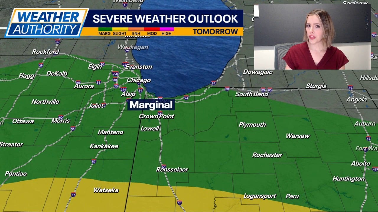 Thursday stays mild, with highs in the 50s to near 60. There’s a chance for rain by Thursday afternoon, along with the potential for strong to severe thunderstorms. A Marginal Risk (Level 1 of 5) covers areas along and south of I-90, while southern Jasper and Newton counties are under a Slight Risk (Level 2 of 5). Stay weather aware as storms move in.