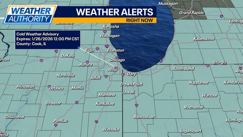 A Winter Weather Advisory is in effect for Lake (IL), Will, and Kankakee until 6 PM.