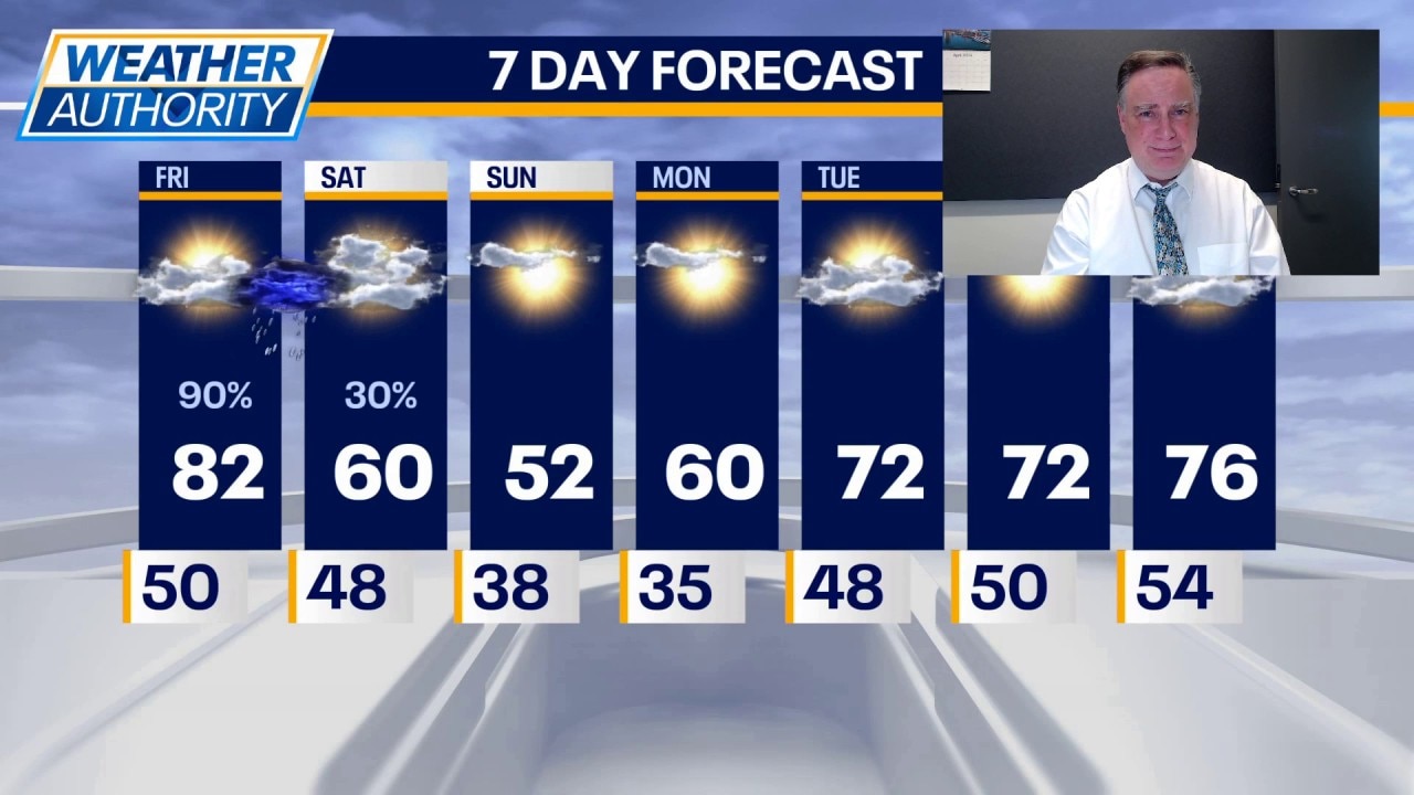 Following our Friday night storms, conditions will turn much cooler for the weekend ahead. Showers will taper off early Saturday and we should break into sunshine through the day with daytime highs in the 50s.